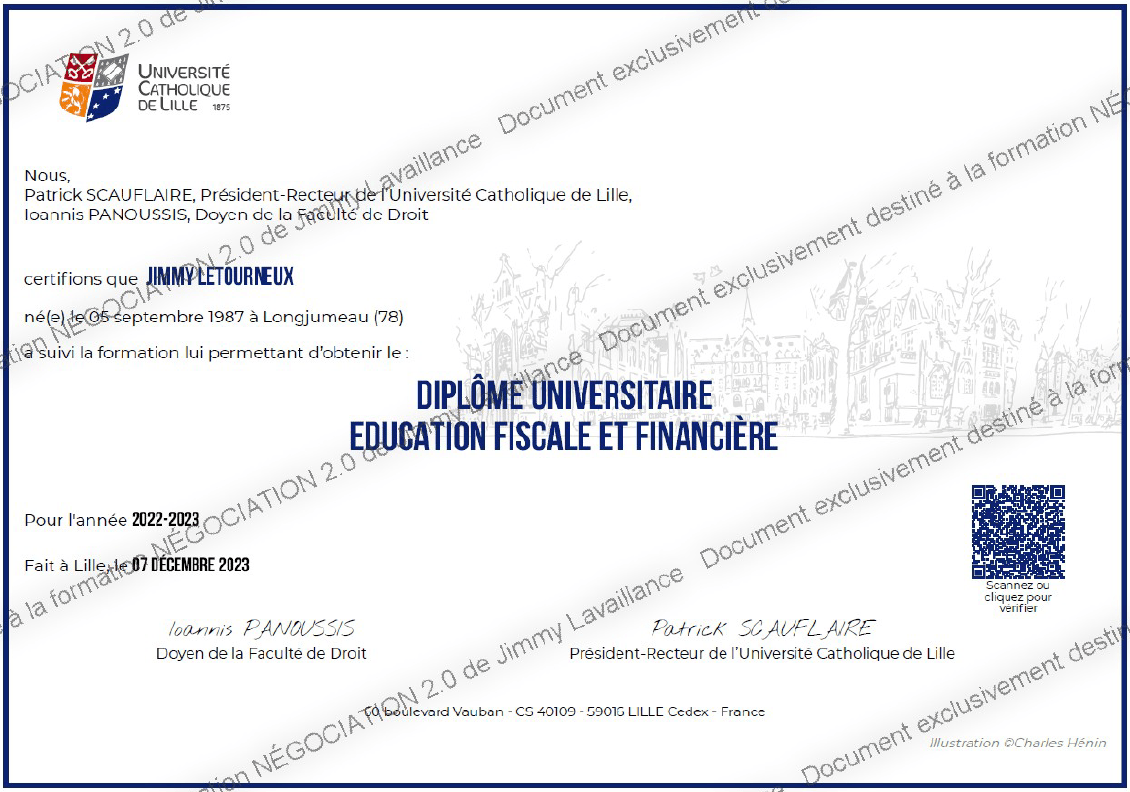 Diplôme Universitaire Education Fiscale & Financière (Université Catholique de Lille - 2023)