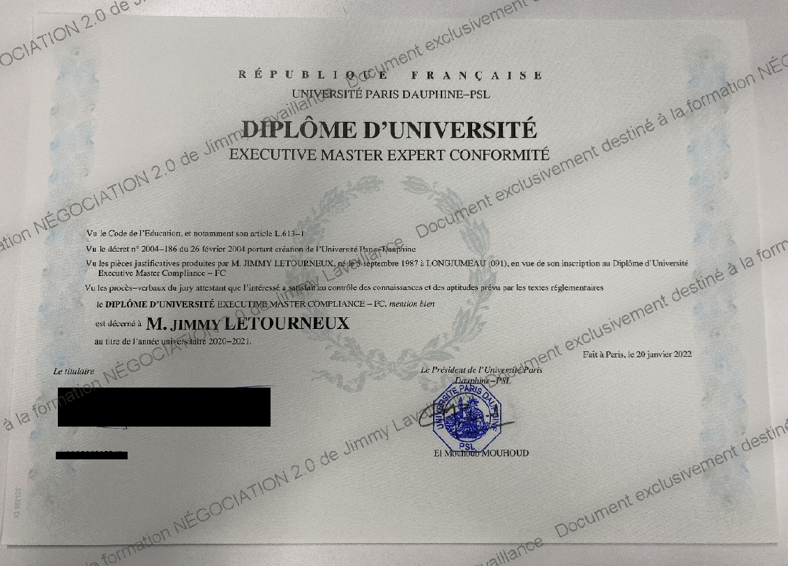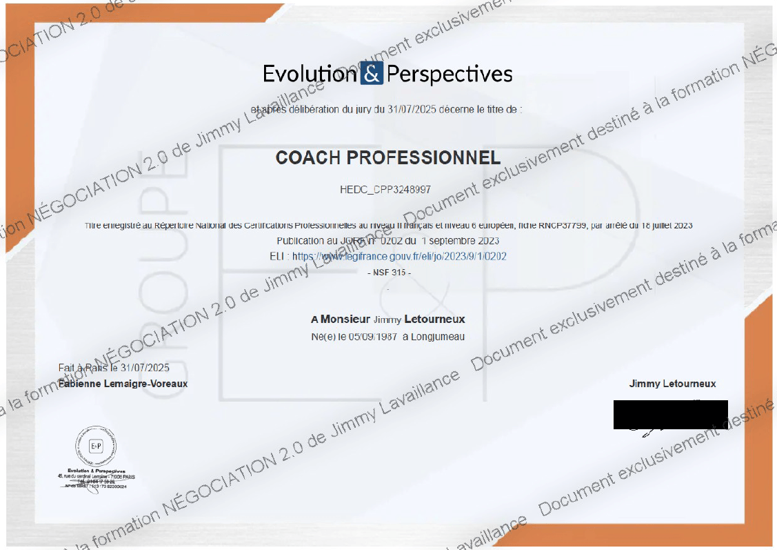 Me former continuellement : deux diplômes universitaires, un Master à Paris-Dauphine, une formation en négociation avec 2 experts certifiés Harvard, et une certification RNCP 6 pour être coach professionnel.